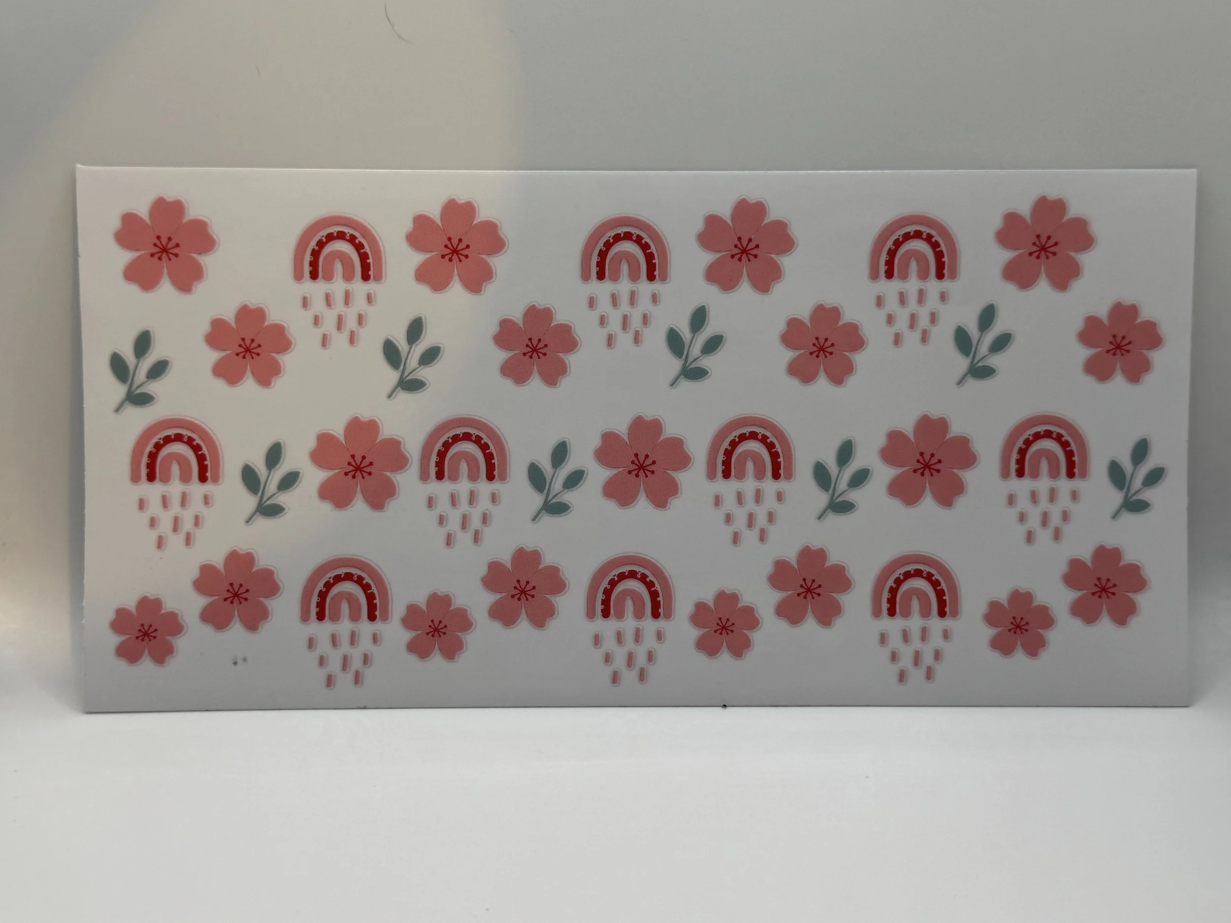 Pottery › Rainbow/Flower/Rain Decal Image 1 of 1 Rainbow/Flower/Rain Decal $3.00 Background will be clear when I peal the back white off and apply to cup. Add To Cart Added! Background will be clear when I peal the back white off and apply to cup.